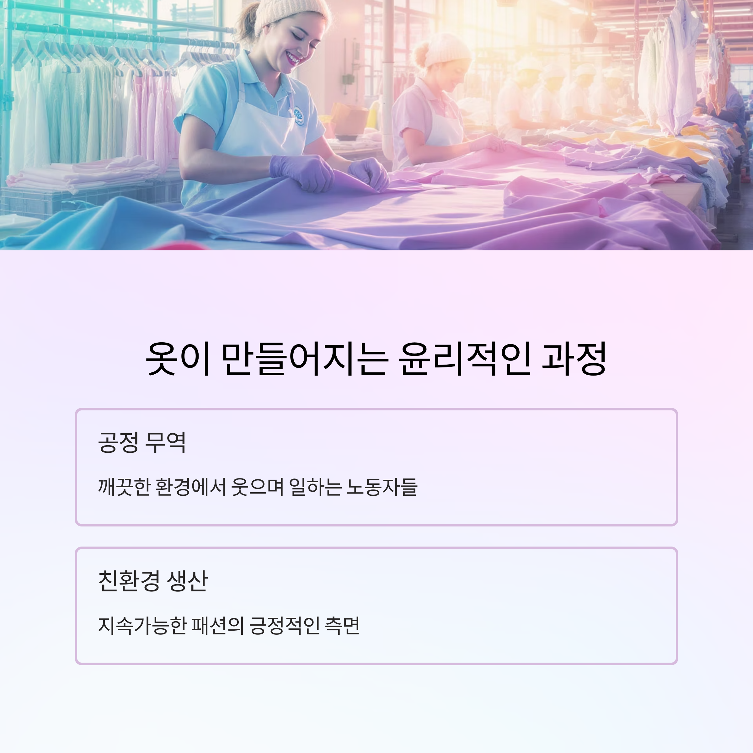 생산 과정에서 노동자들의 인권이 보호되고, 환경에 미치는 영향을 최소화하는 것이 중요하다고 강조하죠.