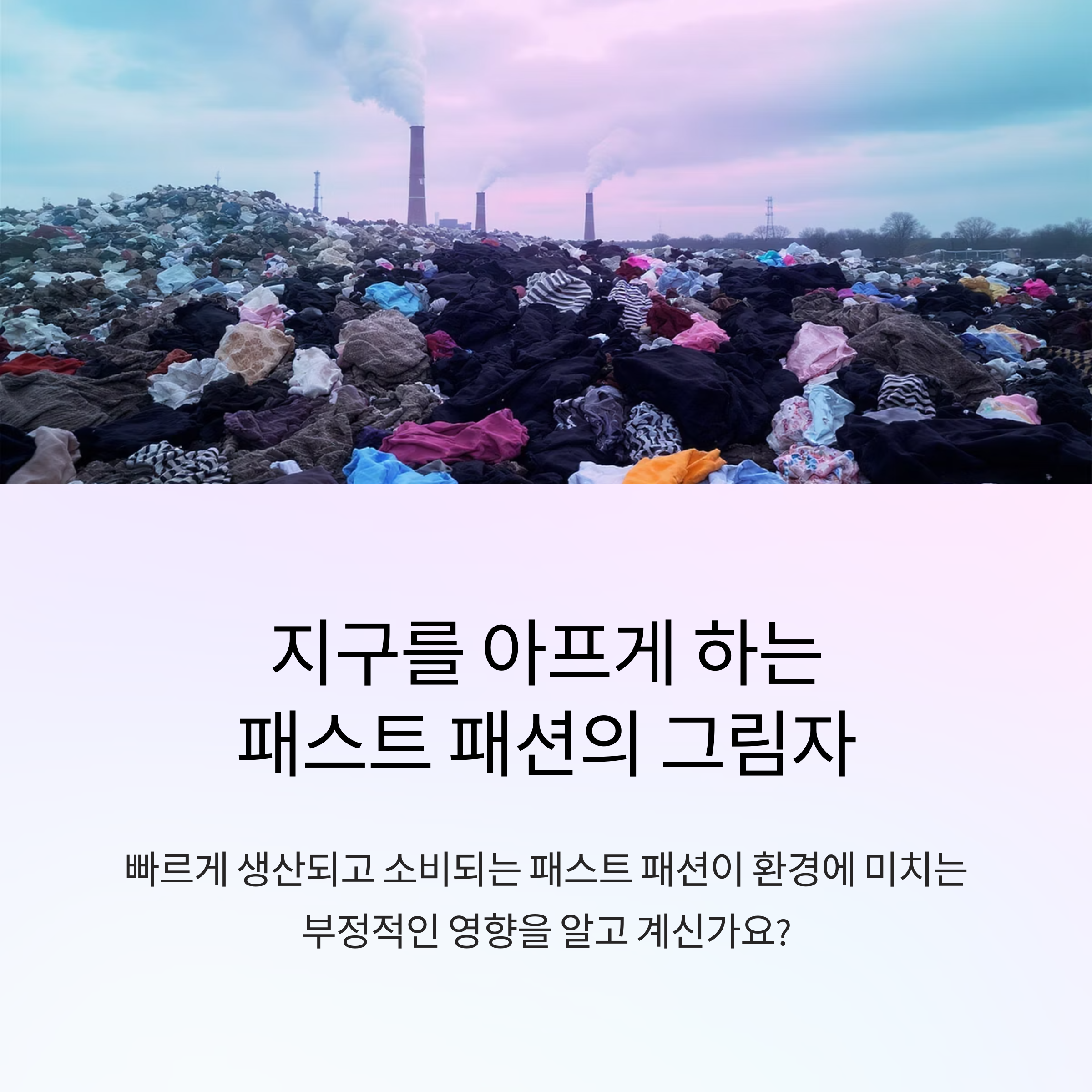 무려 패션 산업이 세계 탄소 배출량의 10%를 차지하고, 매년 수많은 옷들이 버려져 거대한 쓰레기 산을 만들고 있다는 사실,
