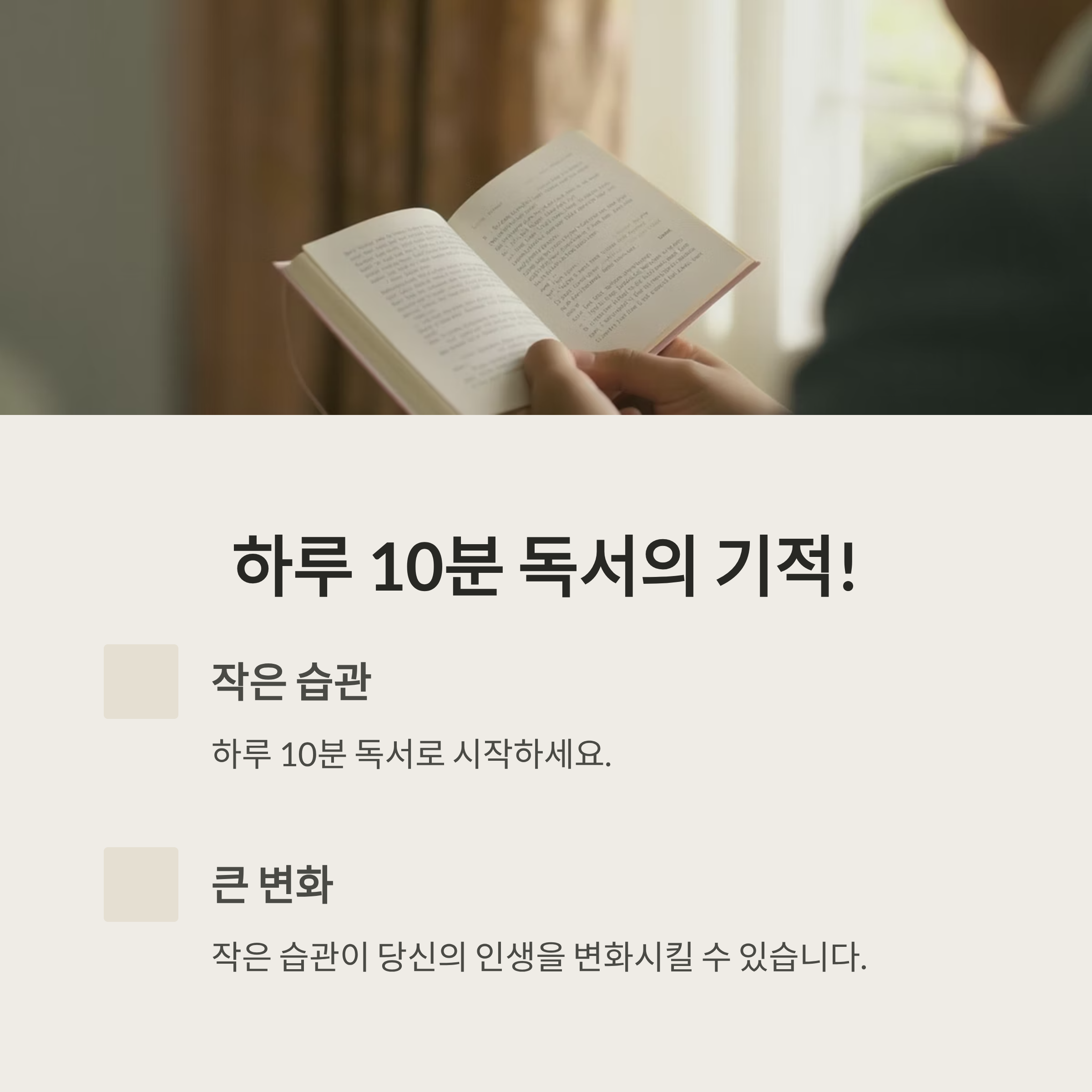 하지만 100일 동안 하루 10분씩 독서를 하면서 놀라운 변화를 경험했죠.